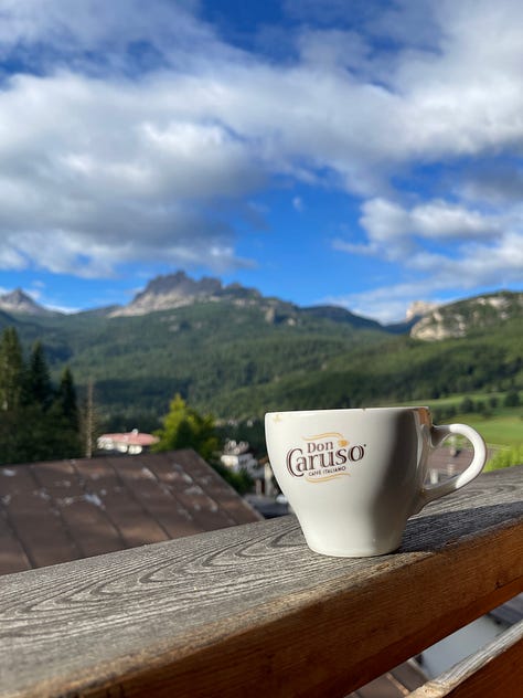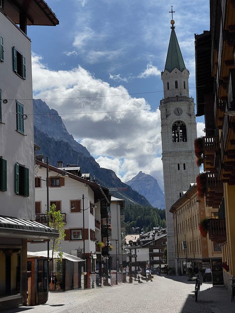 The drive into the mountains shifted after that. The chaos fell away. The scrapes on my car seemed to disappear. The trees grew denser. The peaks more dramatic. The air thinner and cleaner. I arrived in Cortina d’Ampezzo at dusk and checked into Hotel Serena Cortina. A small mountain hotel with floral window boxes and preserved architecture that felt deliberate. This was my first true European mountain town experience. I walked through it in awe. The care. The respect for place. The sense of continuity.